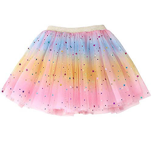 Colores pastel para este tutú de bailarina arco iris con patrón de estrellas y cintura elástica transpirable: