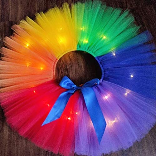 Un verdadero accesorio para la fiesta, el luminoso tutú arco iris con luces LED tendrá un efecto garantizado que pondrá a la gente celosa.