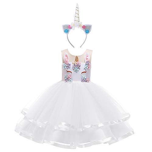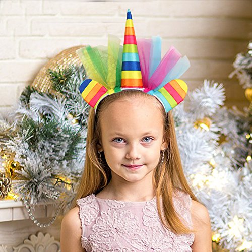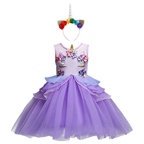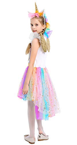 Vestido de unicornio multicolor con cinta para la cabeza: